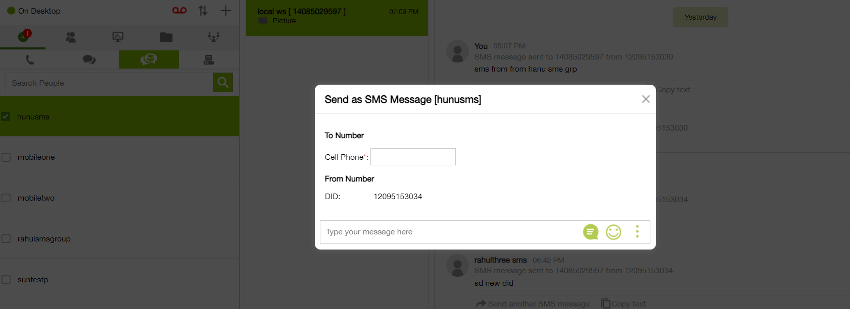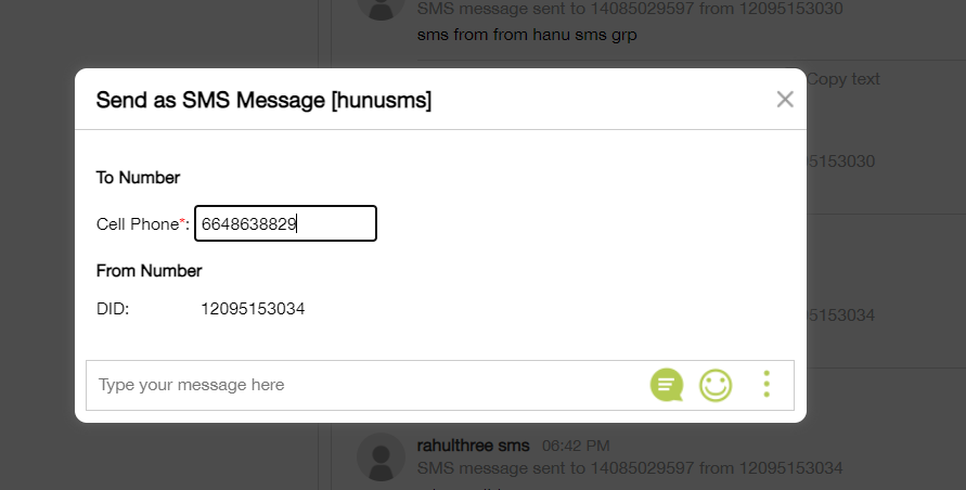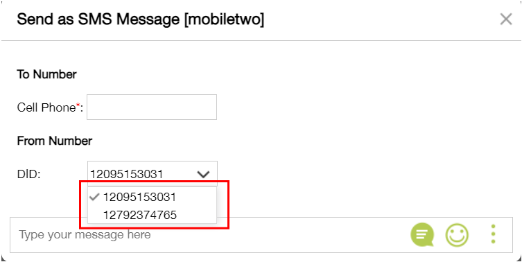 If multiple DIDs assigned to SMS Group, you will see the option to change DID under From Number as shown in the image below: